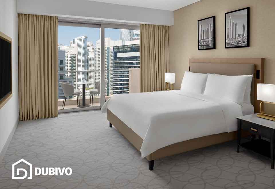 “هتل جیدبلیو ماریوت مارینا” یک هتل پنج ستاره لوکس و مجموعه آپارتمانهای سرویسدهی شده (serviced apartments) از شرکت “Emaar” است که در محله معتبر “دبی مارینا” واقع شده است. این ساختمان ۳۸ طبقه، دارای نمای خارجی شیک و زیبا با روکش شیشه و فلز است که مناظر پانورامیک دبی مارینا را منعکس میکند.