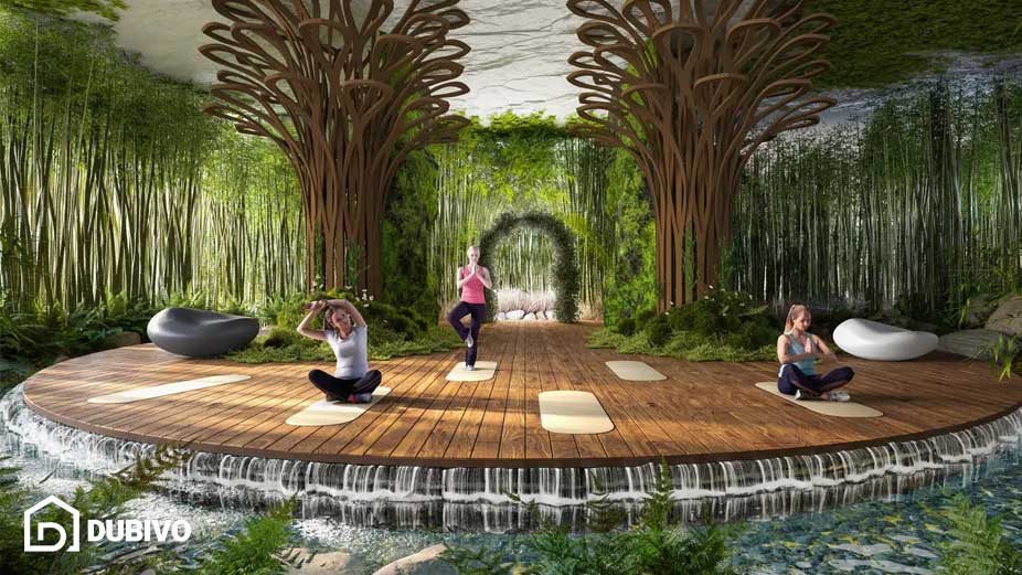 ساکنان به امکانات گسترده‌ای مانند فضاهای آب‌درمانی، کوچه‌باغ بامبو، اتاق نمک و استودیوی یوگا دسترسی دارند.